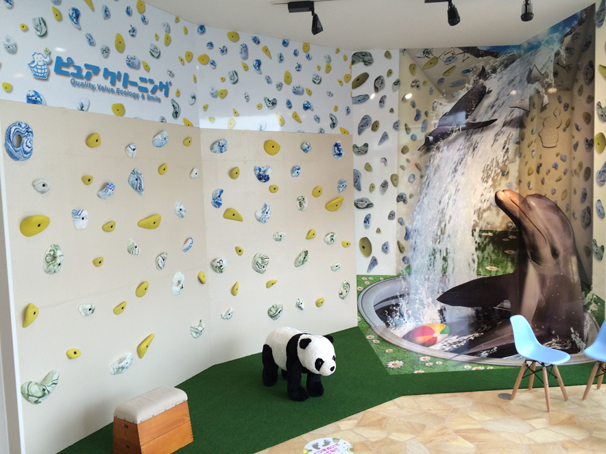 2020年開催の東京オリンピックから、スポーツクライミングが正式種目となります。ここで登ることの楽しさに目覚めた子たちが、将来有望選手になるかもしれませんね!このようにとても個性的な店舗づくりをされている「ホワイトウイングス」。数多くのクリーニング店を経営する会社です。