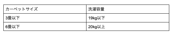 ■カーペットのサイズと洗濯機の洗濯容量目安